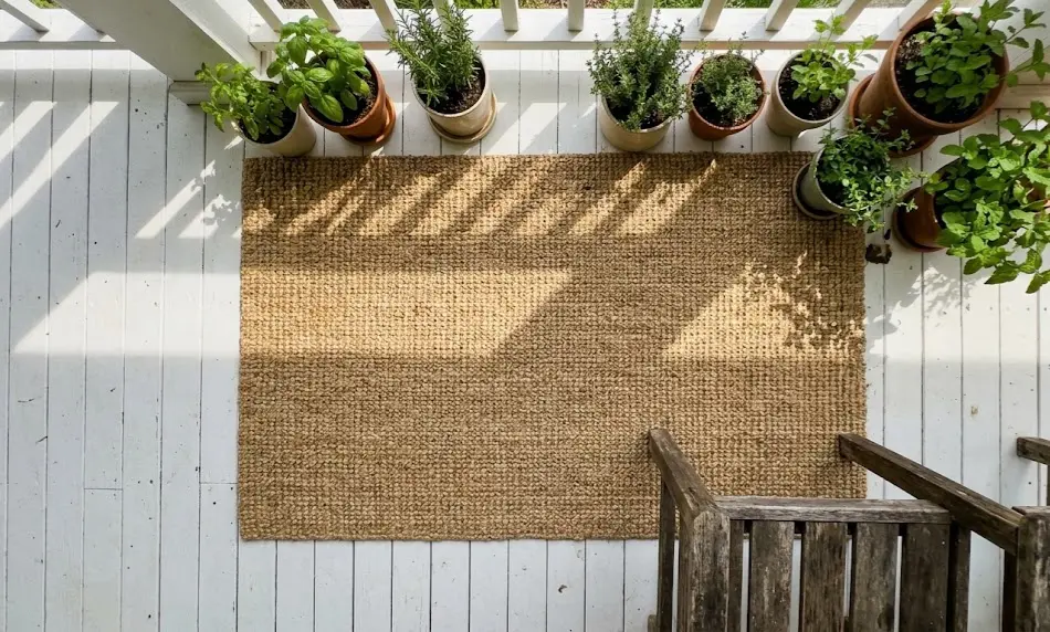 | Outdoor Rug | Recycled ocean plastic rug, $150+ | Hand-loomed upcycled jute or denim mat | $20–$30 |