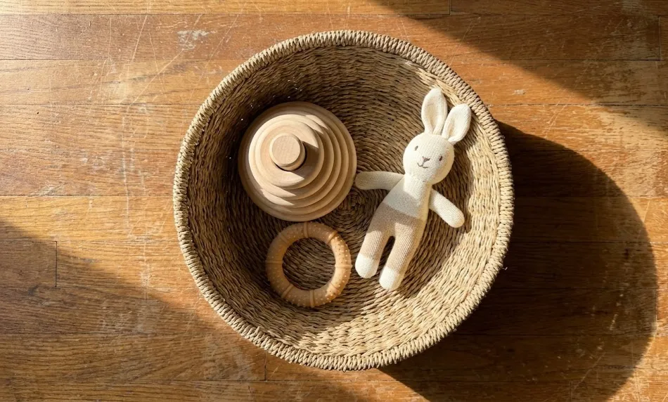 Budget range: $50–$95. Toys are arguably the biggest plastic offender in any baby shower haul. This basket proves you don’t have to compromise on fun.